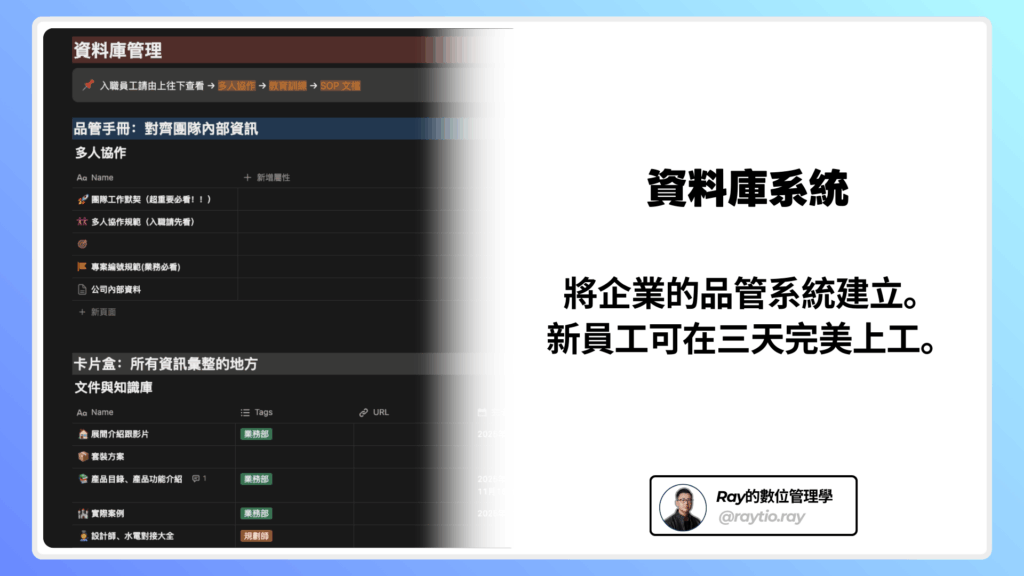 • 用 Notion 搭建 SOP、任務協作、知識庫