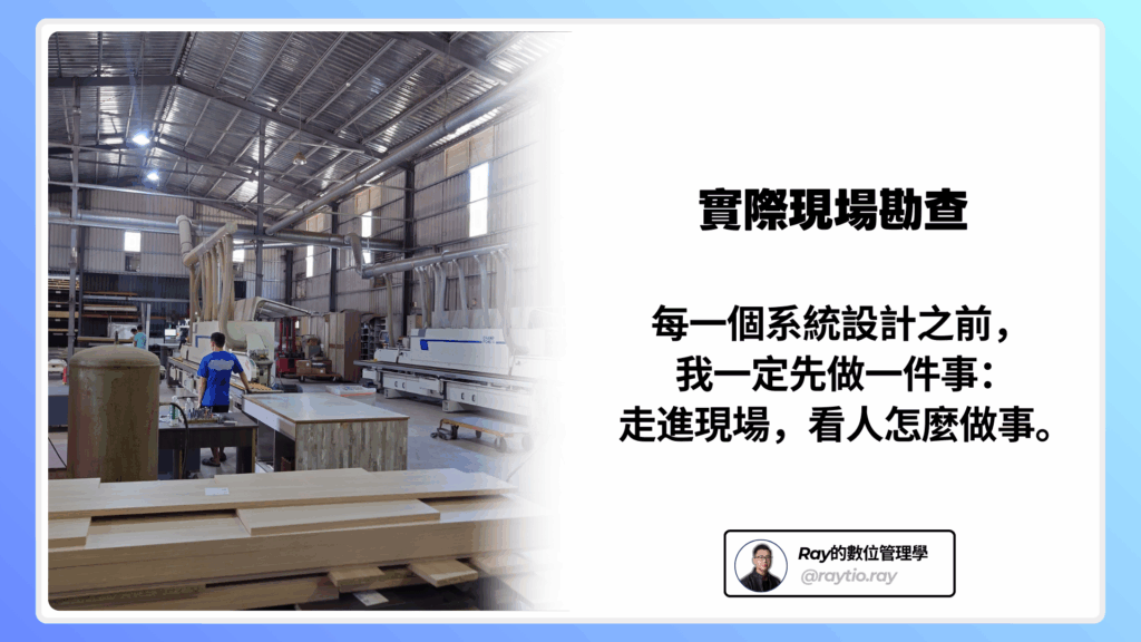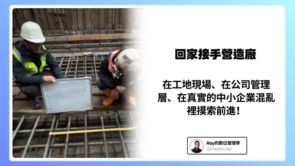 Ray 不是從課堂走出來的顧問,而是 在工地現場、在公司管理層、在真實的中小企業混亂裡長大的人